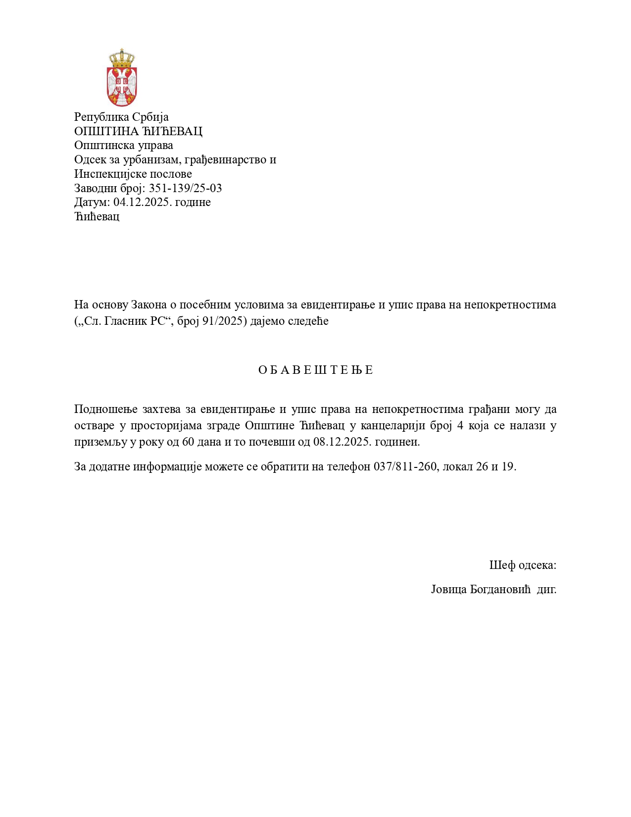 ЈАВНИ УВИД У ДОКУМЕНТАЦИЈУ - Ћићевац